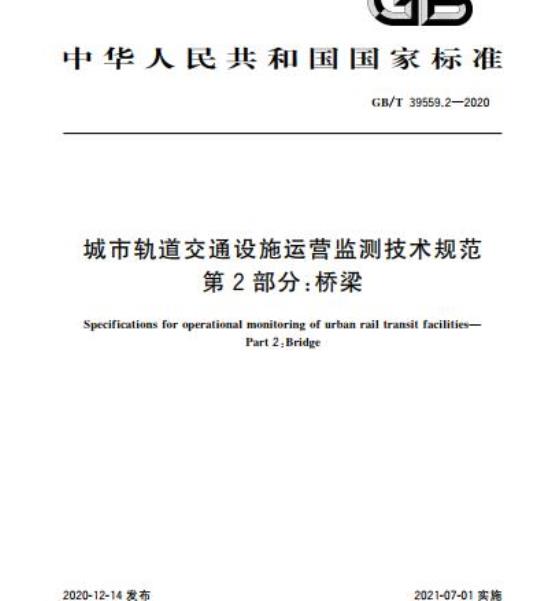 GB/T 39559.2-2020.Specifications for operational monitoring of urban rail transit facilities-Part 2 :Bridge.