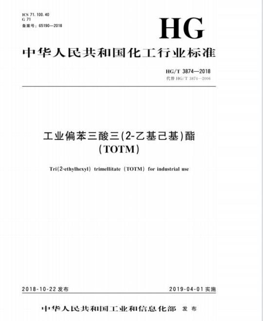 工业偏苯三酸三(2-乙基已基)酯(TOTM)HG/T3874-2018