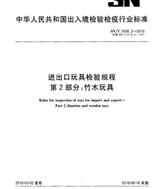 SN/T 2438.2规定了进出口竹木玩具的抽样、检验和检验结果的判定规则。