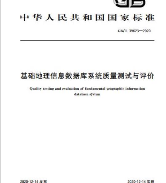 GB/T 39623-2020.Quality testing and evaluation of fundamental geographic information database system.