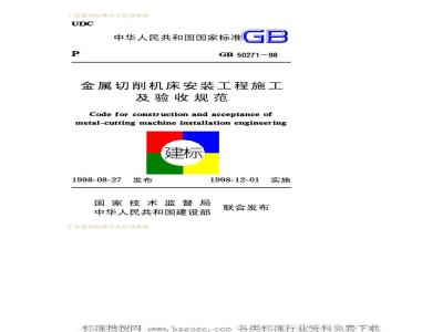 Codefor construction and acceptance ofmetal-cutting machine installation engineeringGB50271-98