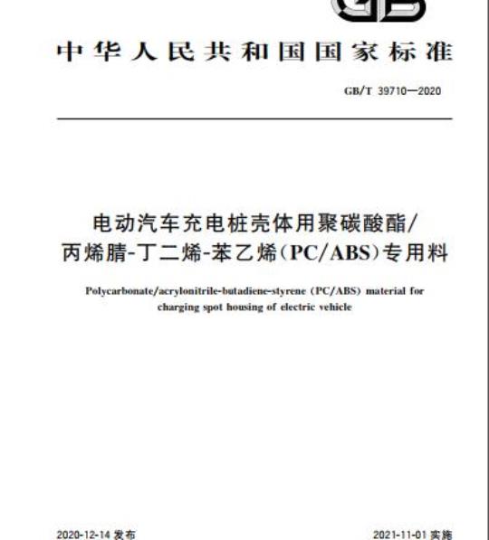 GB/T 39710适用于交流充电桩的外壳所使用的PC/ABS专用料。