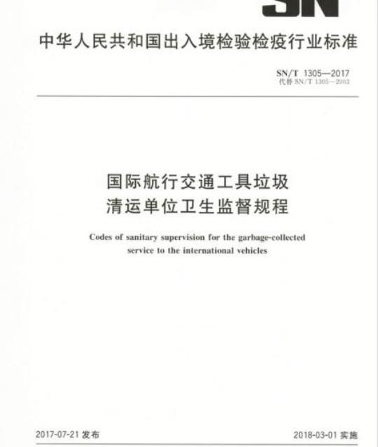 SN/T 1305适用于检验检疫机构对国际航行交通工具垃圾清运单位的卫生监督管理。