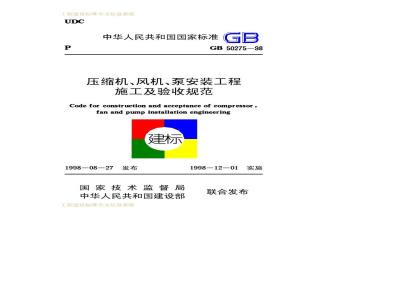 Code for construction and acceptance of compressor,fan and pump installation engineeringGB50275-98