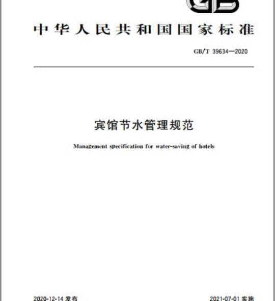 GB/T 39634规定了宾馆节水管理的基本要求、设备设施要求和定额管理要求。