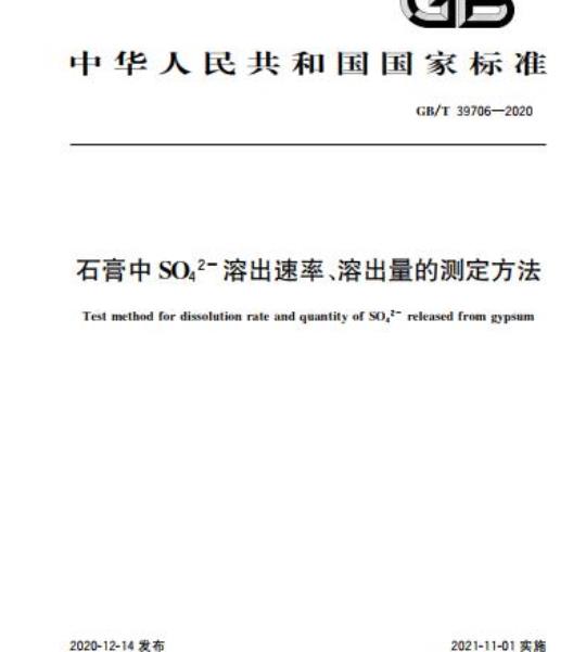 GB/T 39706规定了石膏中SO42-溶出速率及溶出量的测定方法。