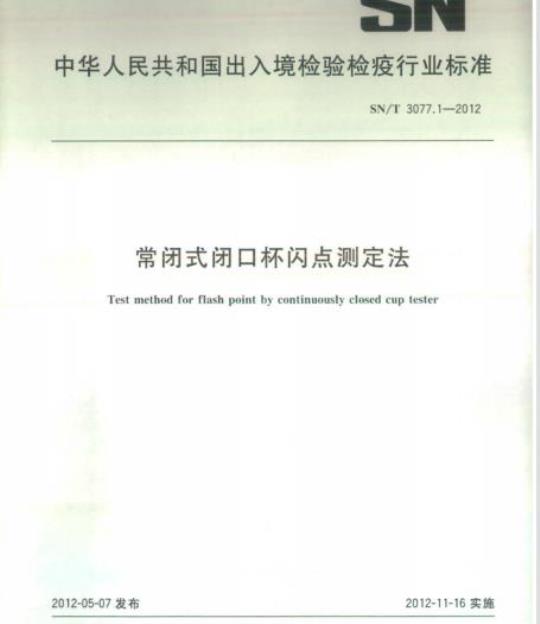 SN/T 3077.1-2012.Test method for flash point by continuously closed cup tester.
