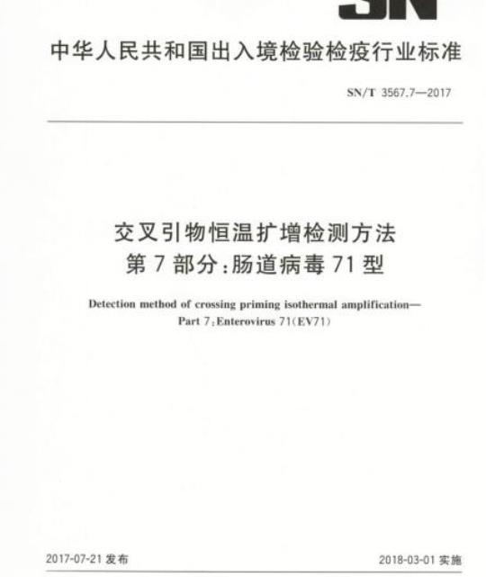 中文名称:交叉引物恒温扩增检测方法第7部分:肠道病毒71型