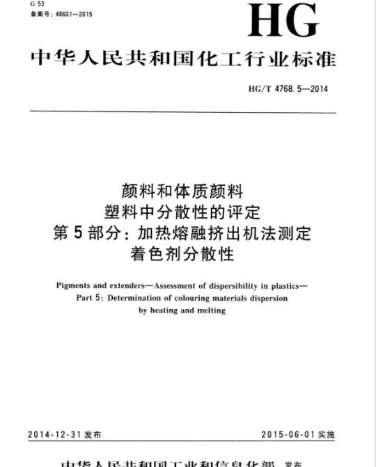 第5部分:加热熔融挤出机法测定着色剂分散性HG/T4768.5-2014