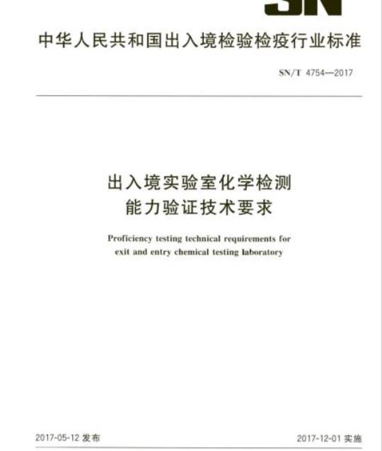 SN/T 4754规定了出人境化学检测领域开展实验室能力验证活动的基本要求。