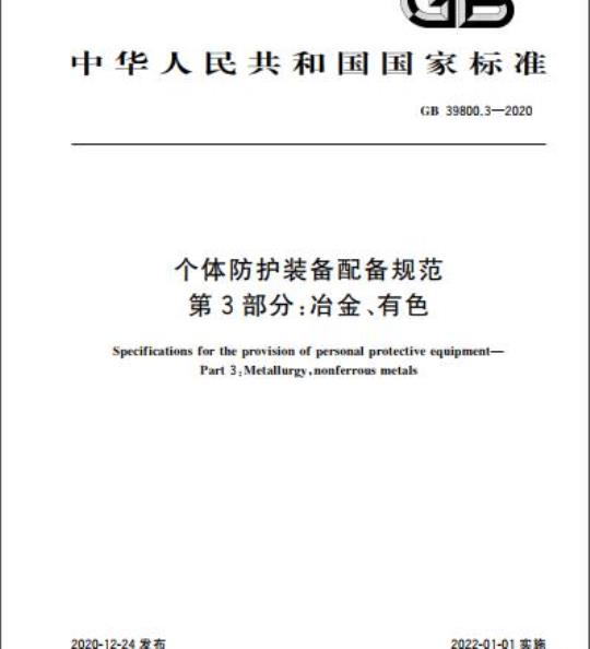 GB 39800.3-2020.Specifications for the provision of personal protective equipment-Part 3: Metallurgy , nonferrous metals.