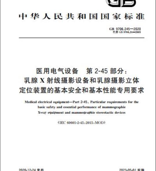 GB 9706.245-2020.Medical electrical equipment-Part 2-45: Particular requirements for the basic safety and essential performance of mammographie X-ray equipment and mammographie stereotactic devices.