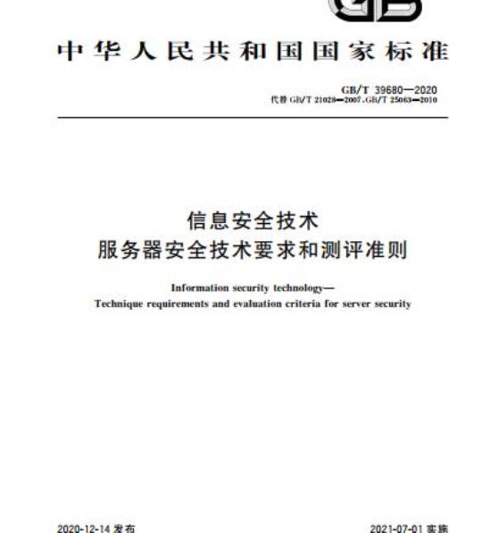 GB/T 39680规定了服务器的安全技术要求和测评准则。