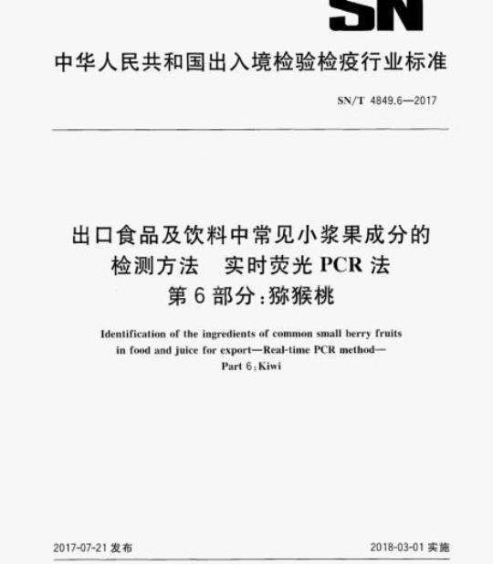 SN/T 4849.6规定了出口食品及饮料中猕猴桃成分的检测方法实时荧光 PCR法。