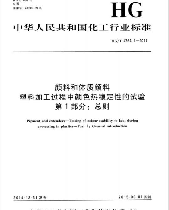 HG/T 4767.1规定了HG/T4767的其他部分中所述的各种试验方法所共有的详细信息。试验方法的选择取决于待着色的塑料材料、处理方法和最终使用要求。