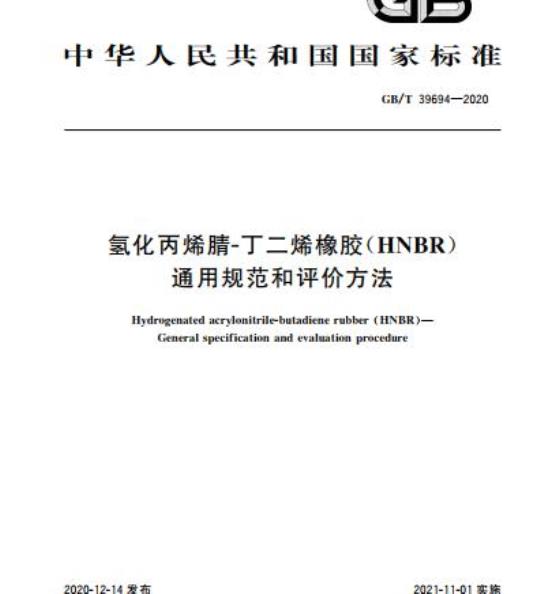 GB/T 39694-2020.Hydrogenated acrylonitrile-butadiene rubber (HNBR )-General specification and evaluation procedure.