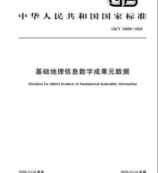 GB/T 39608-2020.Metadata for digital products of fundamental geographic information.