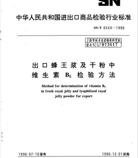 SN/T 0549适用于出口强化蜂王浆及干粉中维生素B6的测定。