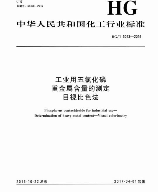 HG/T 5043规定了工业用五氯化磷中重金属含量测定的方法。
