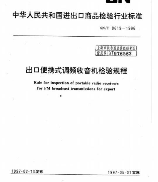 SN/T 0619适用于工作频率范围为87~108MHz,以直流供电的出口调频收音机的检验。