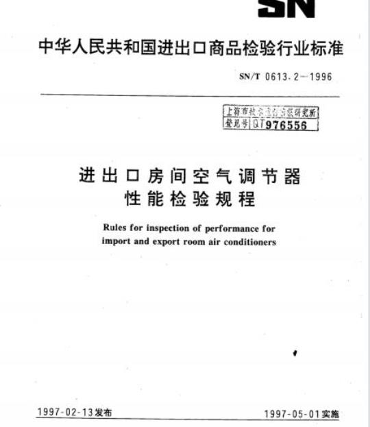 SN/T 0613.2规定了进出口房间空气调节器(以下简称空调器)性能检验项目、检验内容、检验方法、抽样和判定。