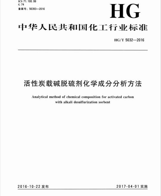 HG/T 5032规定了活性炭载碱脱硫剂化学成分分析方法。