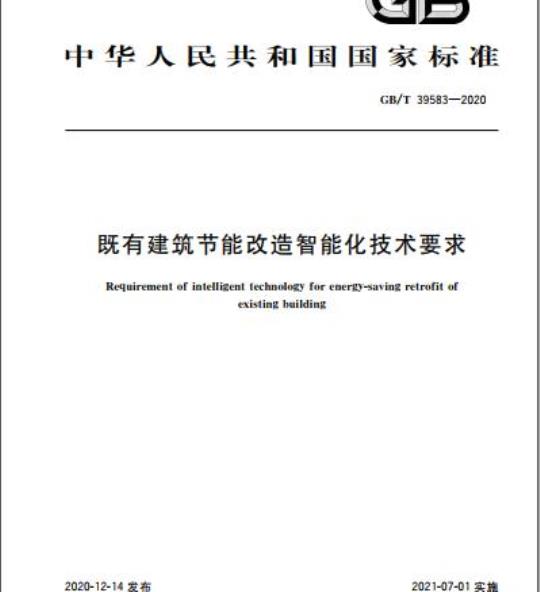 GB/T 39583规定了既有建筑节能改造所涉及的节能与智能化系统应用现状诊断、智能化技术要求和智能化系统运行安全与维护要求。