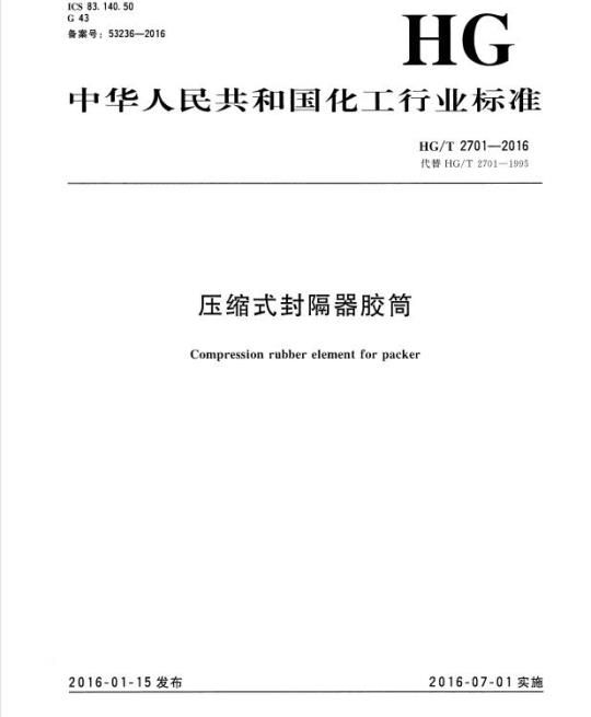 HG/T 2701-2016.Compression rubber element for packer.