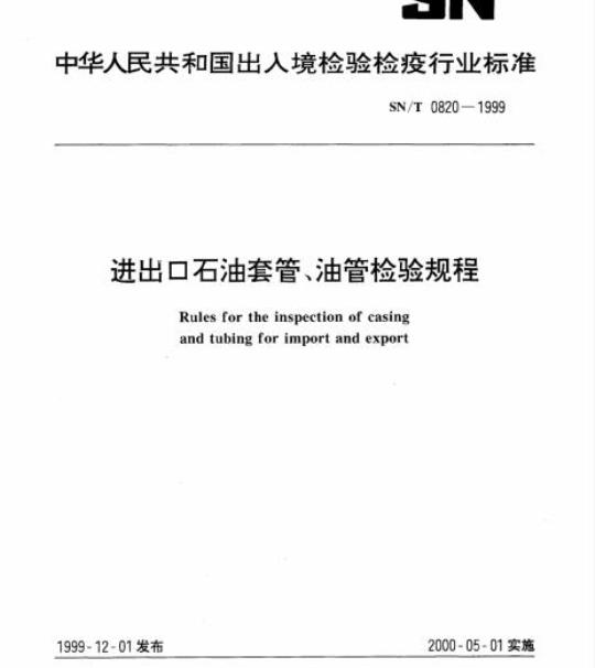 SN/T 0820适用于对进出口石油油井用各种规格的套管、油管和衬管及各种规格的短节、连接管和接箍的检验。
