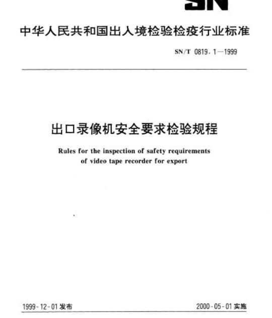 SN/T 0819.1规定了出口家用录像机安全要求检验的抽样、检验及检验结果的判定。