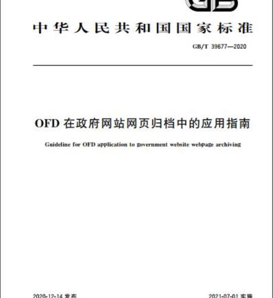 OFD在政府网站网页归档中的应用指南Guideline for OFD application to government website webpage archiving2020-12-14发布