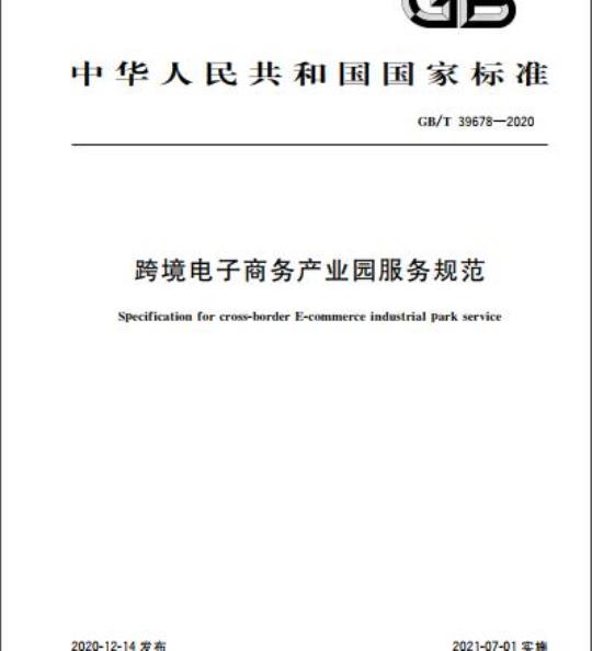 GB/T 39678-2020.Specification for cross-border E-commerce industrial park service.