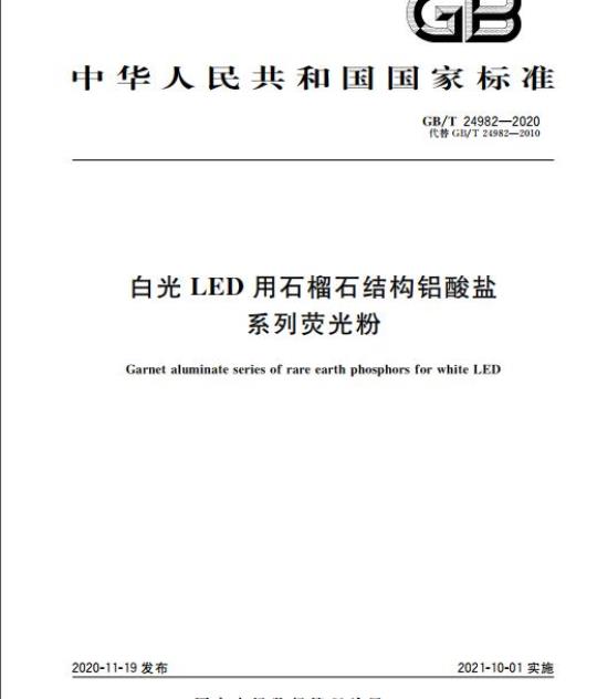 GB/T 24982-2020.Garnet aluminate series of rare earth phosphors for white LED.