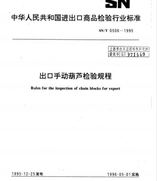 SN/T 0506-1995.Rules for the inspection of chain blocks for export.