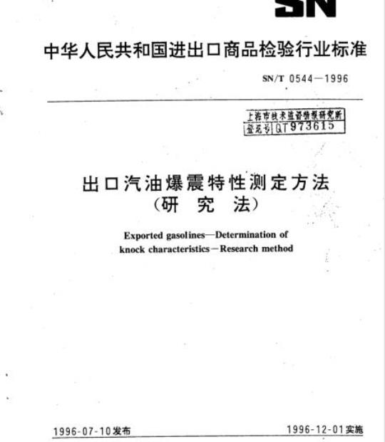 SN/T 0544-1996.Exported gasolines- Determination of knock characteristics - Research method.