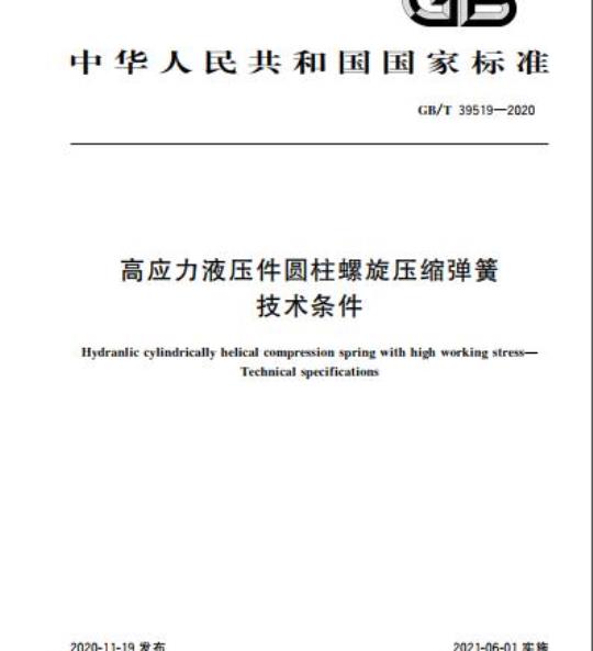 GB/T 39519-2020.Hydranlic cylindrically helical compression spring with high working stress-Technical specifications.