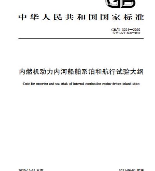 GB/T 3221-2020.Code for mooring and sea trials of internal combustion engine-driven inland ships.
