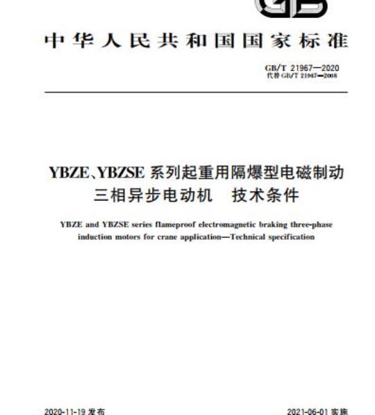 YBZE and YBZSE series flameproof electromagnetic braking three-phaseinduction motors for crane application-Technical specification2020-11-19发布