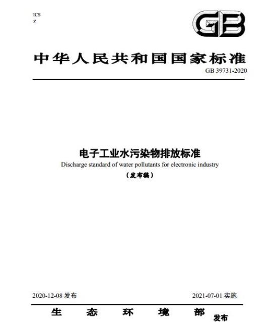 GB 39731-2020.Discharge standard of water pollutants for electronic industry.