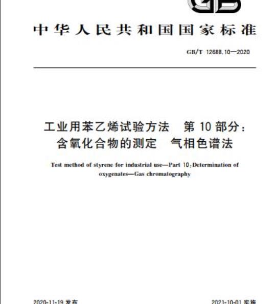 GB/T 12688.10-2020.Test method of styrene for industrial use-Part 10 : Determination of oxygenates-Gas chromatography.