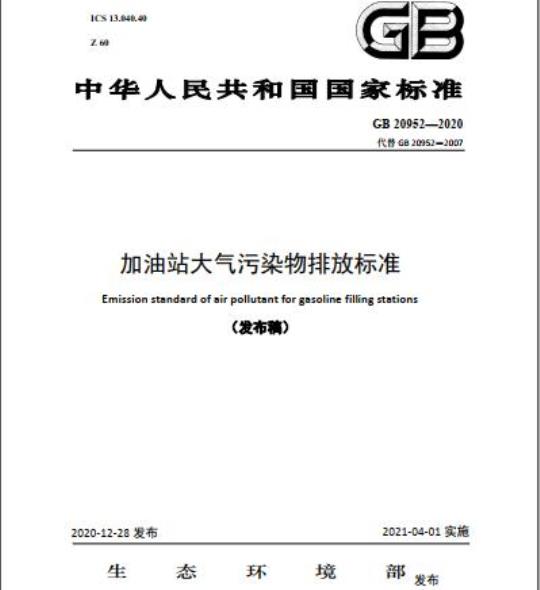 GB 20952规定了加油站在汽油( 包括含醇汽油)卸油、储存、加油过程中油气排放控制要求、监测和监督管理要求。
