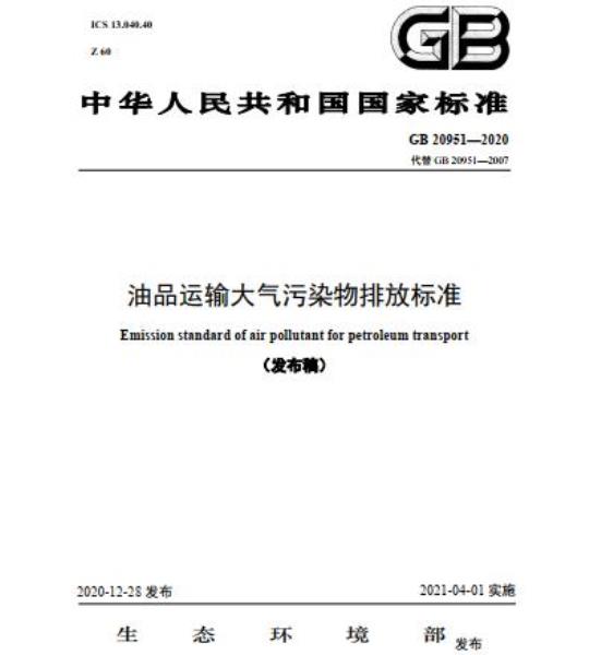 GB 20951规定了油品运输过程中油气排放控制要求、监测和监督管理要求。