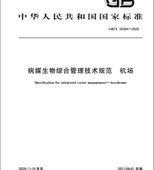 GB/T 39504规定了机场病媒生物综合管理的原则、程序和方法。