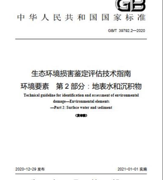 GB/T 39792.2规定了涉及地表水和沉积物的生态环境损害鉴定评估的内容、工作程序、方法和技术要求。