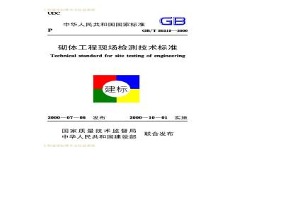 本标准适用于下列砌体工程中砖砌体和砂浆的现场检测和强度 GB/T 50315-2000 砌体工程现场检测技术标准 GB/T50315-2000 标准下载解压密码:www.bzxz.net