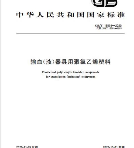 GB/T 15593-2020.Plasticized poly( vinyl chloride ) compounds for transfusion ( infusion) equipment.