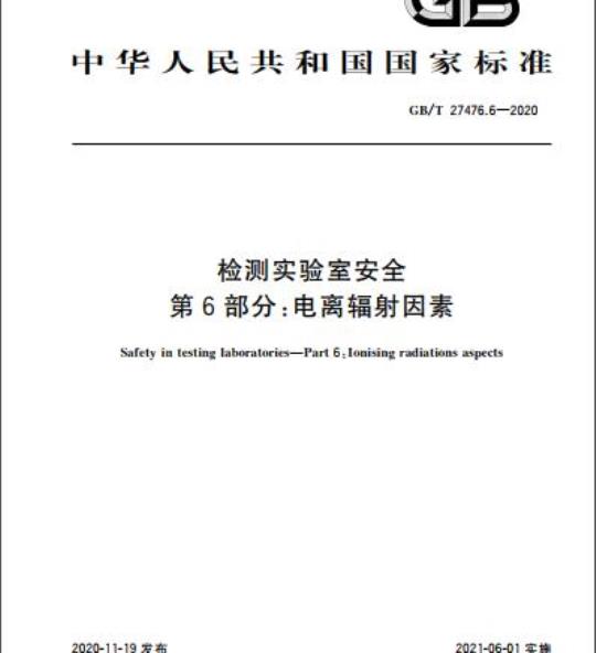 GB/T 27476的本部分规定了检测实验室(以下简称实验室)与电离辐射因素相关的术语和定义、安全管理要求、安全技术要求等。
