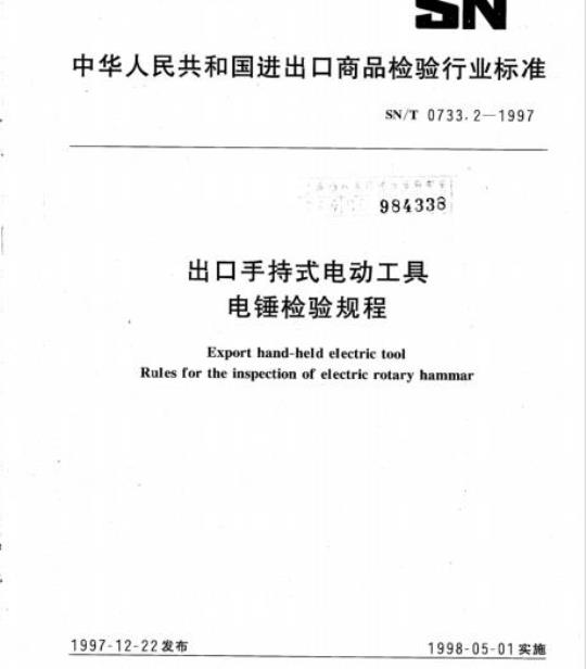 SN/T 0733.2规定了出口手持式电动工具中电锤及调速电锤出口检验的抽样、检验和检验结果的判定。