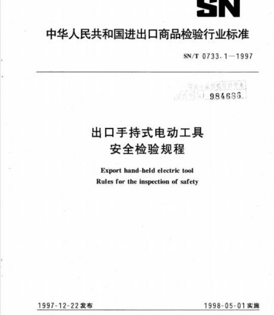 SN/T 0733.1适用于一般条件下,使用的手持式电动工具的出口安全检验。
