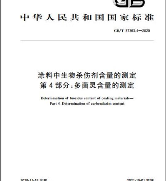 GB/T 37363.4-2020.Determination of biocides content of coating materials-Part 4: Determination of carbendazim content.